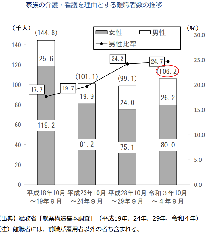 労働人口減少の中、実際の介護離職が増え続けることは、日本経済にとって好ましいとは言えません。